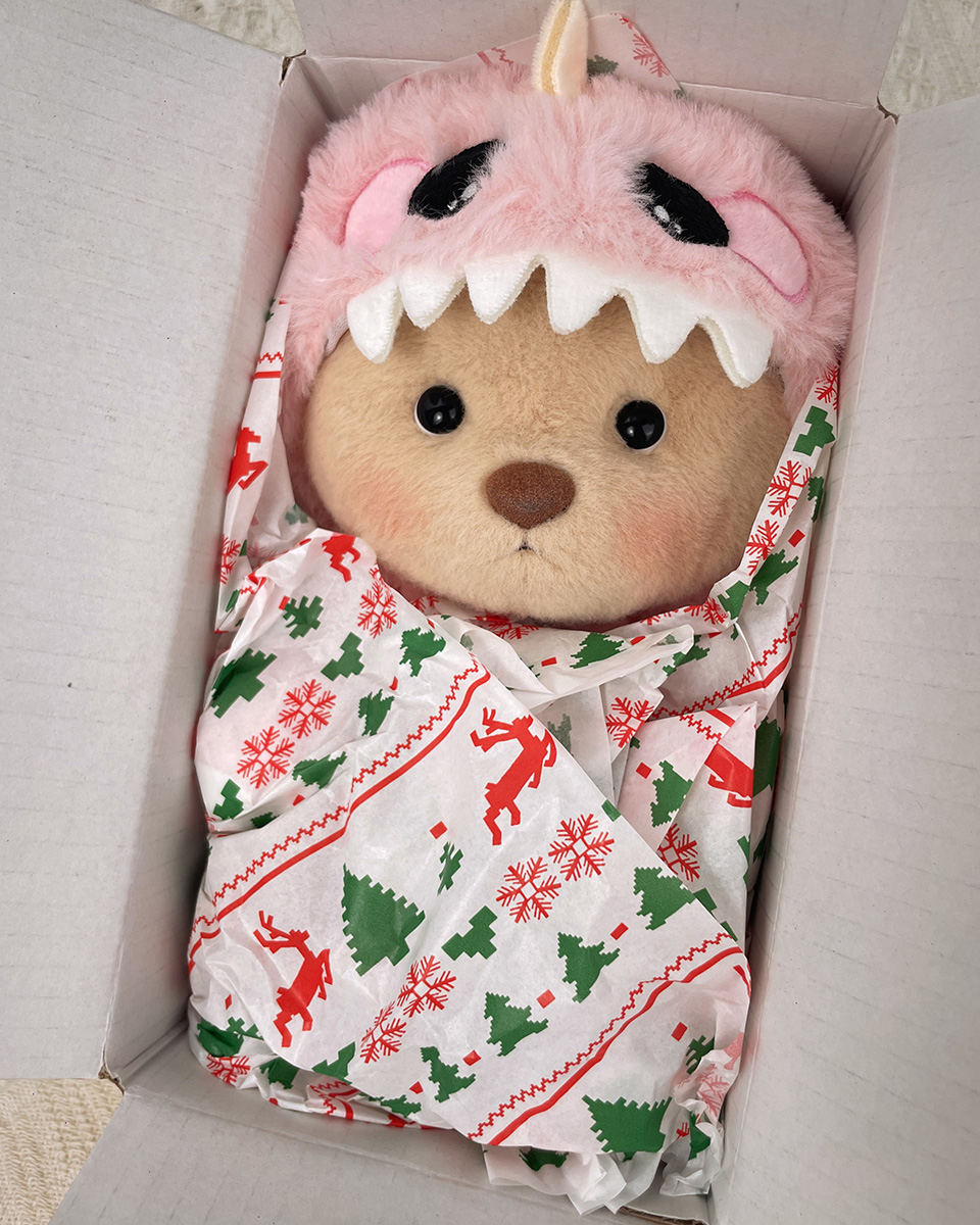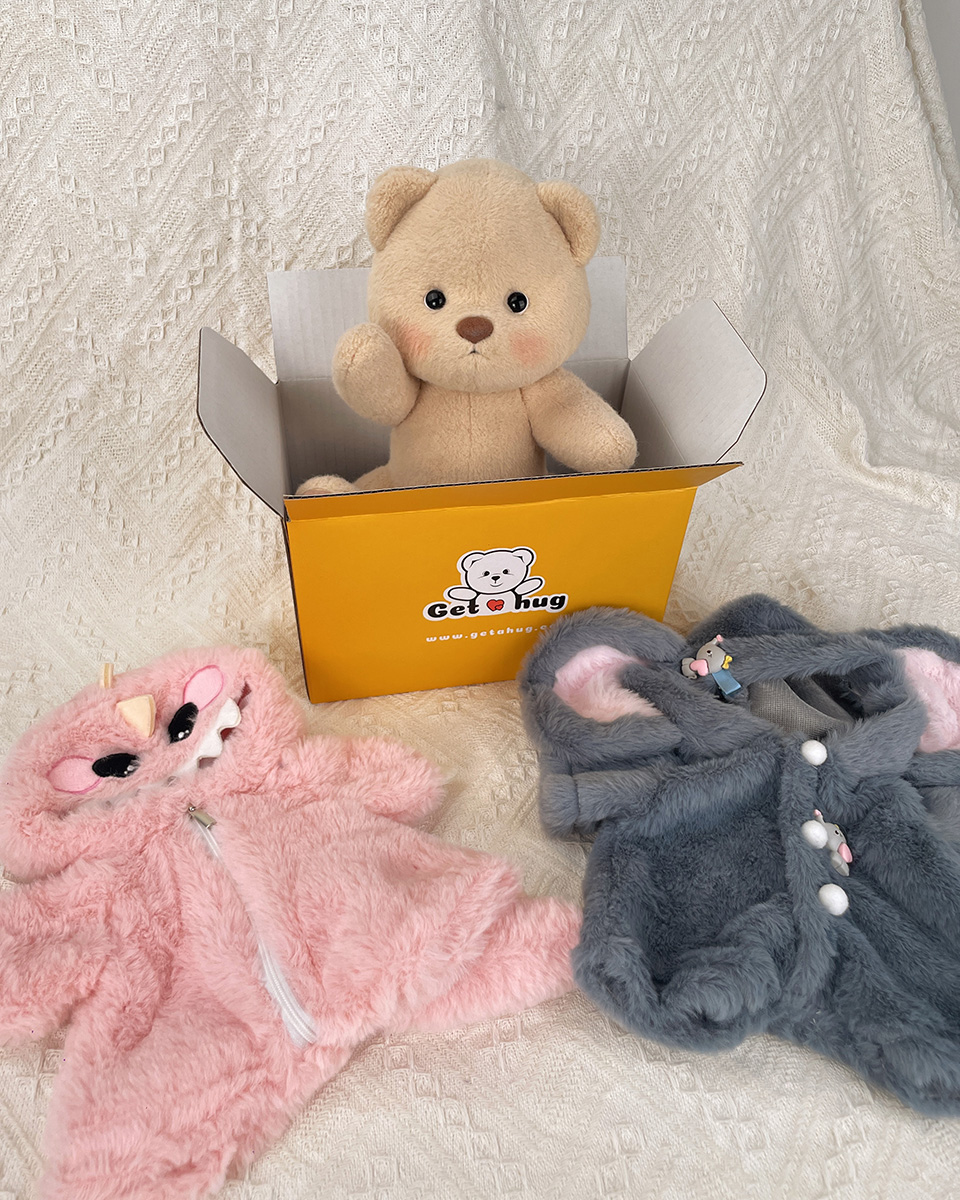 Start by selecting a teddy bear that captures your loved one’s personality or brings back a cherished memory. Take your time to pick the perfect one—whether it’s a bear in a fun green dinosaur costume, a sweet My Melody outfit, or a cozy rabbit onesie.