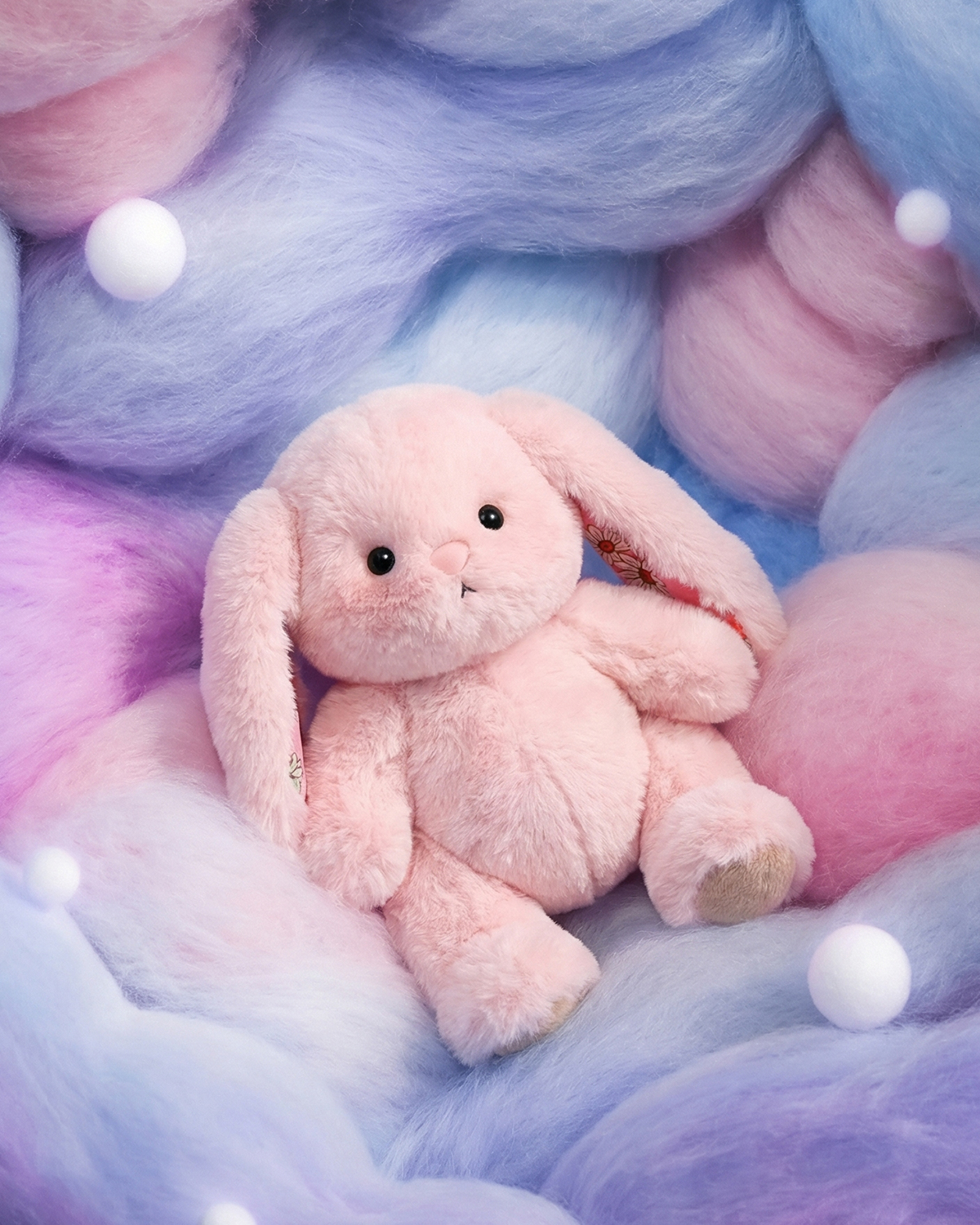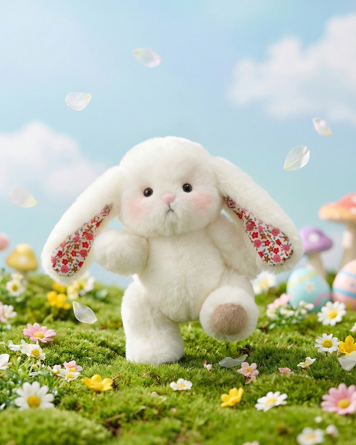 • Signature Floral Ears: Every bunny features unique, beautifully detailed floral patterns on the inside of its long ears, inspired by the colors and shapes of blooming flowers. This special detail gives each bunny a personality all its own.