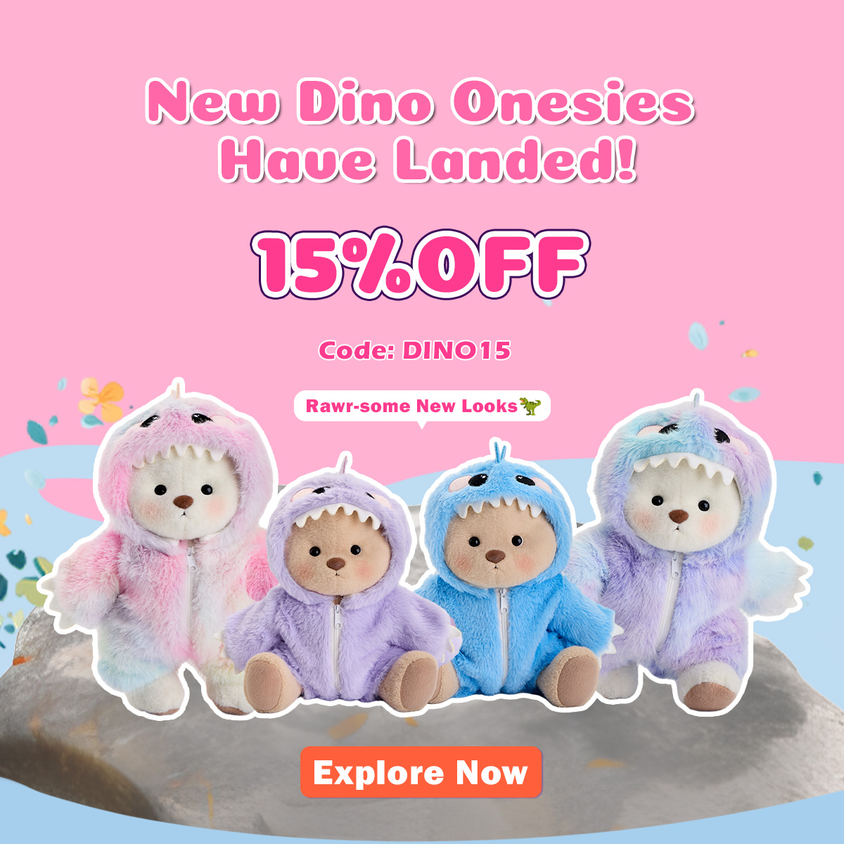 At Getahug, our dinosaur-themed teddy bears have always been fan favorites, with the beloved pink and green dinosaurs capturing hearts everywhere.