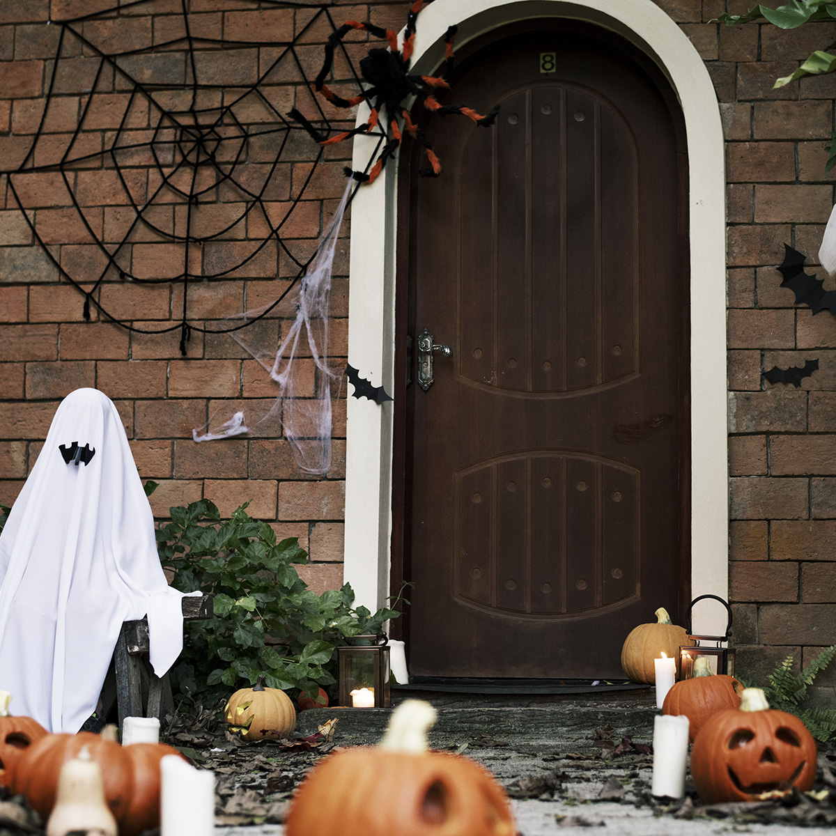 Your entryway is the first thing guests will see, so make it count! Line your porch with pumpkins, lanterns, and spooky figurines like skeletons or witches. Add a fog machine or eerie sound effects to make it even more haunting as trick-or-treaters approach.