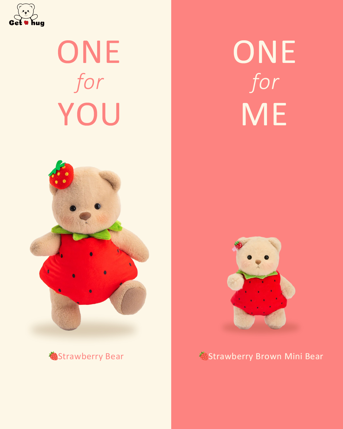 🍓 Love Strawberry Bear & Bunny Brown Mini Bear